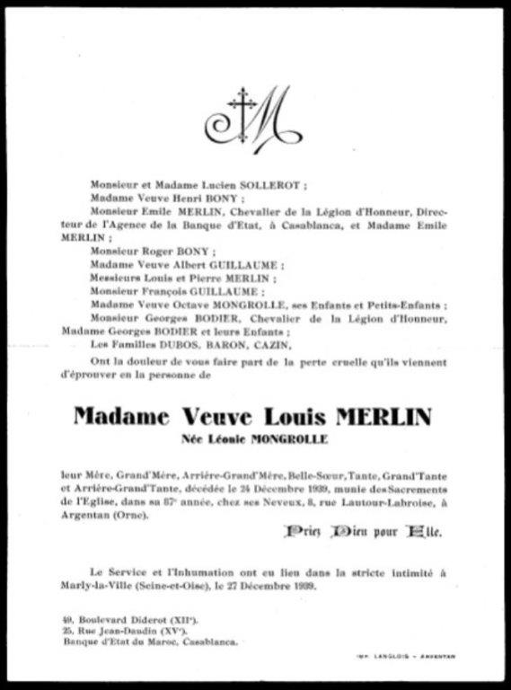 Naissance : 29 mars 1853 à Marly-la-Ville 95670 Décès : 24 décembre 1939 à Argentan 61200