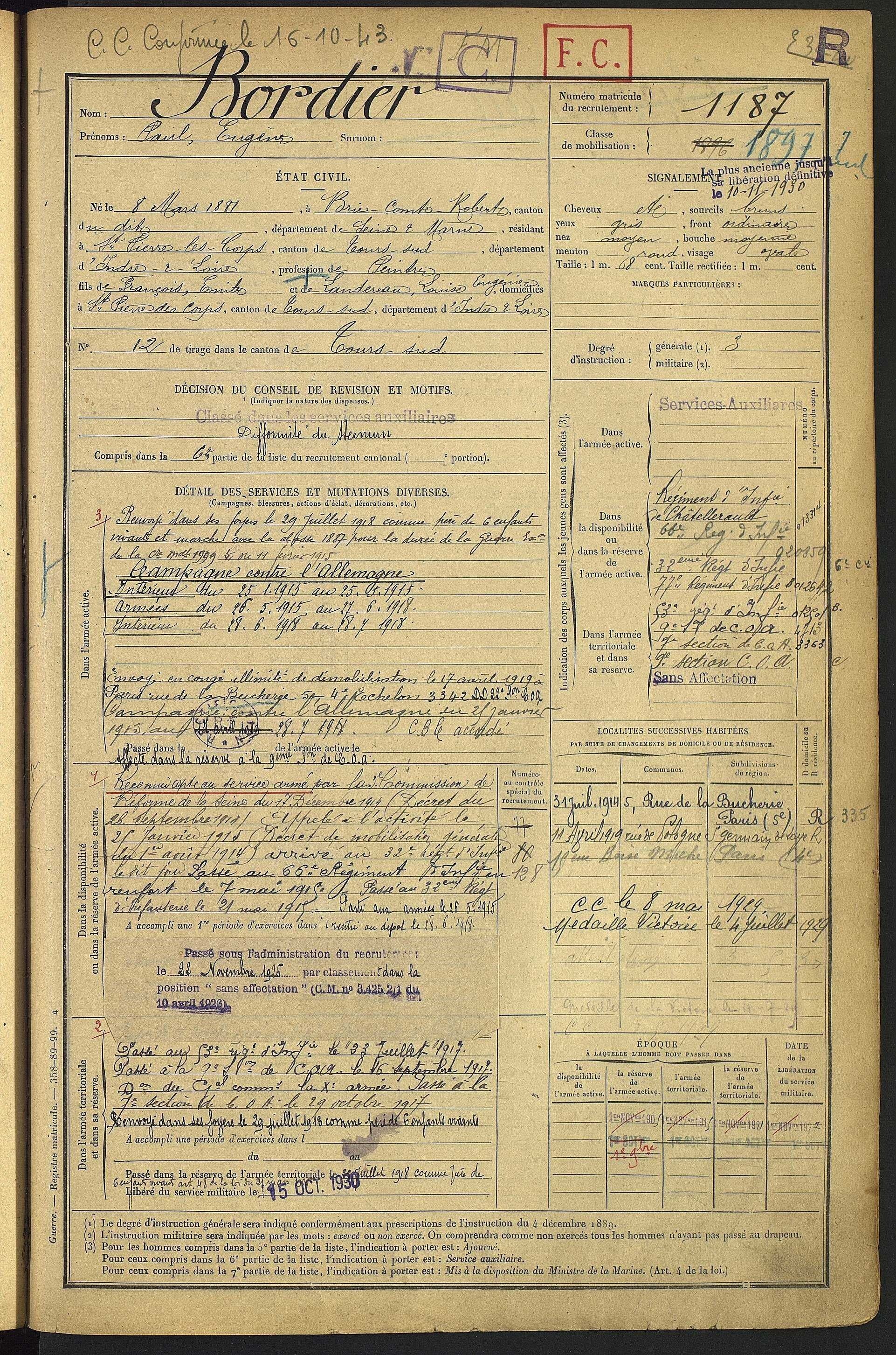 Enfant : BORDIER Paul Eugene ( 1881 - ? )