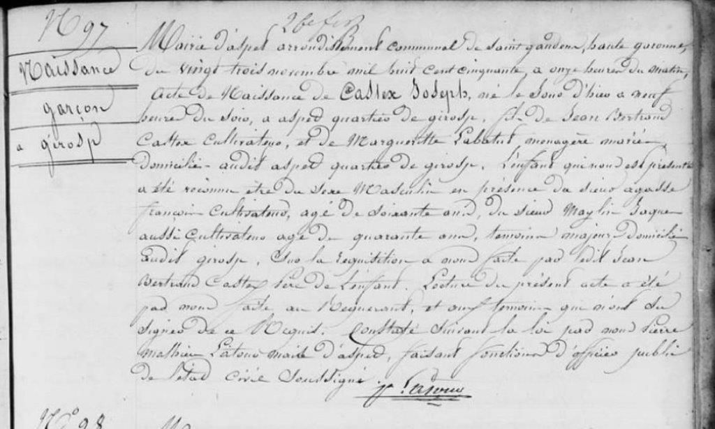 Père : CASTEX Jean Bertrand Theodore ( 1811 - ? )