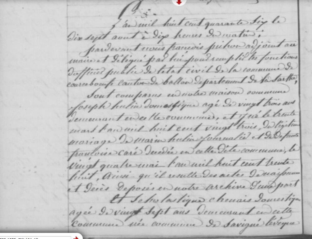Mariage : 17 août 1846 à Courceboeufs 72290